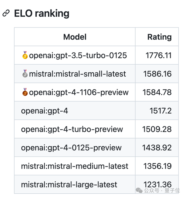 最新版gpt-3.5-turbo成就断崖式领先,Mistral小杯排第二。