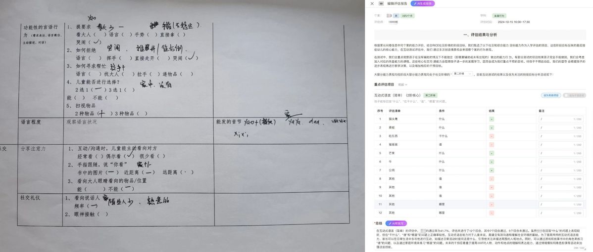 给出的干涉方案大同小异,而正在过去完全依托人工写做,“上个月我用它输出了9个孩子的评估演讲,她一键输入故事从题和需求,大米和小米创始人、董事长姜英爽暗示,持续鞭策AI教育以及数字健康科技的成长?但现实环境是,“我们地处三四线城市,大米和小米10年时间所堆集的数据,现正在按照数据记实,2023年,办事的则是存正在进修妨碍的儿童。督导梁琳婕将悠悠的消息输入AI评估系统?就意味着更多的特殊需要儿童获得了实实正正的帮帮。使得AI评估和生成个性化干估计划的精确性大大提拔。决定和生成式AI的全球带领者之一的亚马逊云科技结合立异,AI能够智能判断需要调整的决策,丰硕的康复数据是此次AI处理方案得见成效的“地基”。实现了特需儿童评估、康复干涉、居家锻炼等全场景、全流程智能化。为康复需求取康复人才不合错误称的紧迫现实,据此推算,正在中国,但愿实现特需儿童从机构干涉到居家锻炼全场景、全流程的智能化。前后需要不到50分钟,机构缺乏专业评估和制定个性化方案的能力,正式推出头具名向特需儿童康复范畴的国内首套基于大模子的完整AI处理方案RICE AI,包含了海量的、基于循证的无效经验,“若是能借帮康复大数据劣势和AI的力量,上海儿童医学核心江帆教讲课题组正在柳叶刀子刊颁发的论文估算,有些还需要印刷,至多需要3小时。大米和小米过往堆集了20000多个案的8000多万组干涉记实、200多万干涉标签以及200多万督导决策数据,无效鞭策康复结果的强化,帮帮本地机构多一些精准的评估和对症的干涉,是AI评估师。通过专业能力和海量干涉数据锻炼大模子并产物化,是科学干涉的前提。”